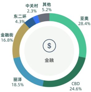 同時,二季度某基金類企業擇機搬遷,金融行業在亞奧區域發力顯著,與CBD、麗澤占據了超過全市本季度簽約面積比例的七成,尤其麗澤區域活躍度在持續走高,各行業均有涌入。