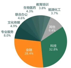 科技、金融、專業服務行業仍是帶動租賃市場的三大主力行業;同時,科技行業雖受相關政策影響,進行辦公環境整合,成交面積占比稍有降低,但仍然占據成交面積首位,在疫情之下仍表現出更為強勁的活力;而金融、專業服務、聯合辦公、生物醫藥行業始終穩居前茅,依舊維持在較高的市場活躍水平。
