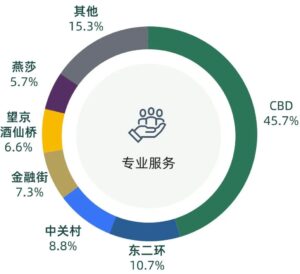 專業服務類企業在二季度擴張進度有所放緩,吸納量相較上季度降低59.1個百分點。但專業服務類企業仍以兼顧區位交通與品質形象優質的CBD、東二環區域樓宇作為其總部或分公司的辦公場所。