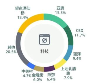 科技企業在望京酒仙橋及亞奧商圈發力明顯,此次沖擊并未影響到此前該區域企業擴張的需求,仍有多數企業抓住機遇進行辦公品質的提升、改善辦公環境或降低租賃成本;亞奧、CBD也同樣吸引了多數科技企業的入駐,上述商圈成交占比約為全市的五成。