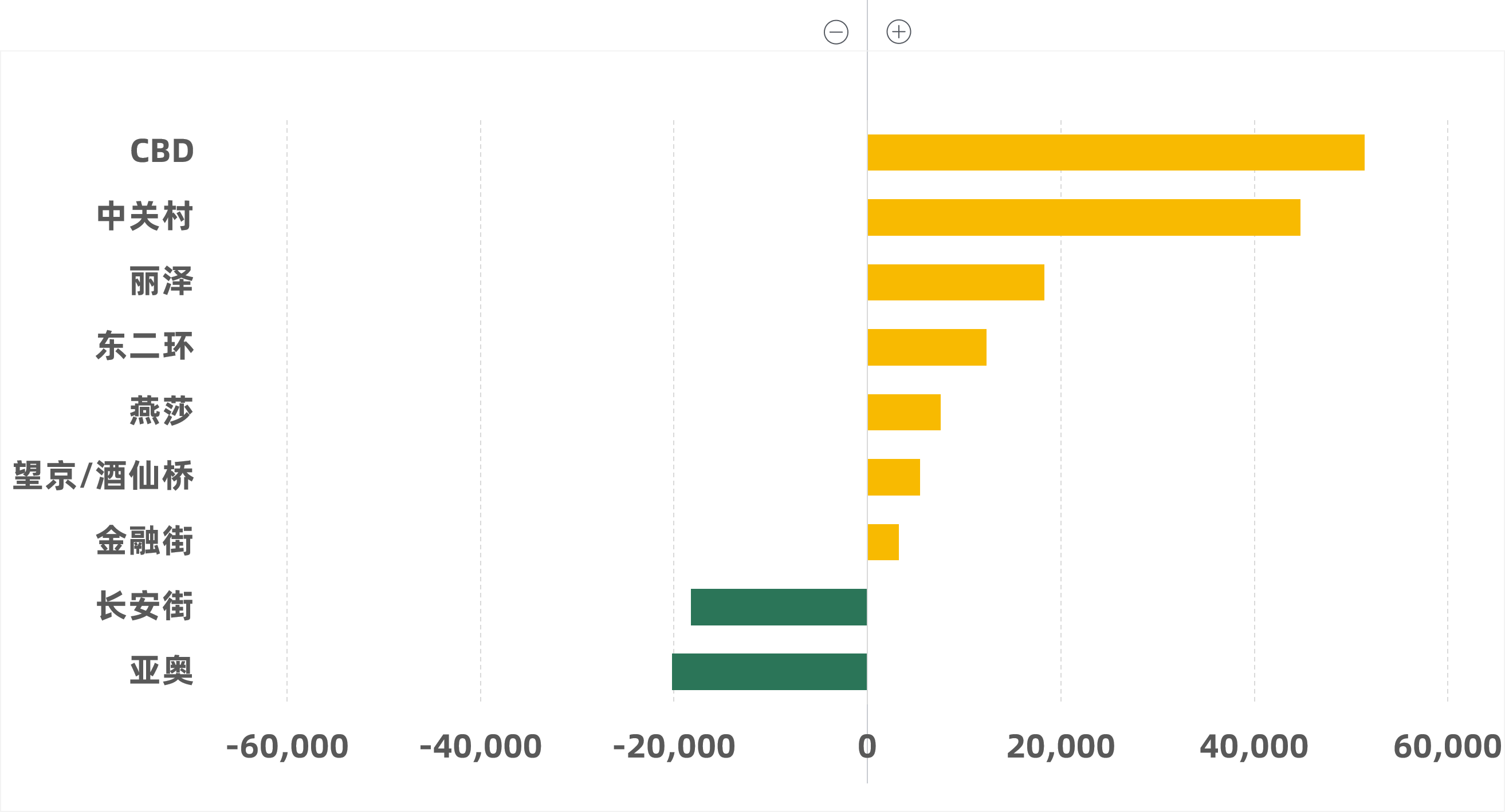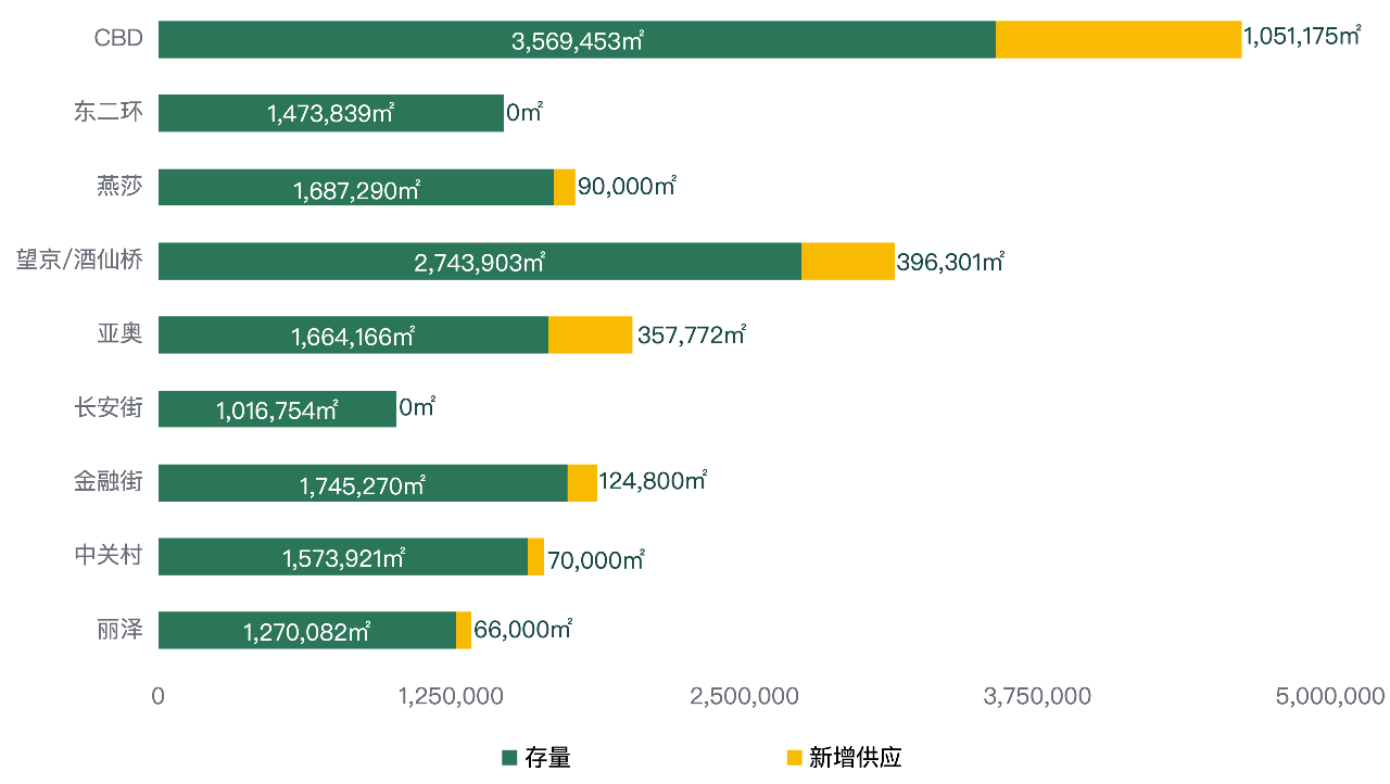 從城市更新項目來看,2024年全年預計還將有2個城市更新項目入市,為亞奧、中關村商圈的寫字樓市場帶來超過10萬平方米的新增供應量。