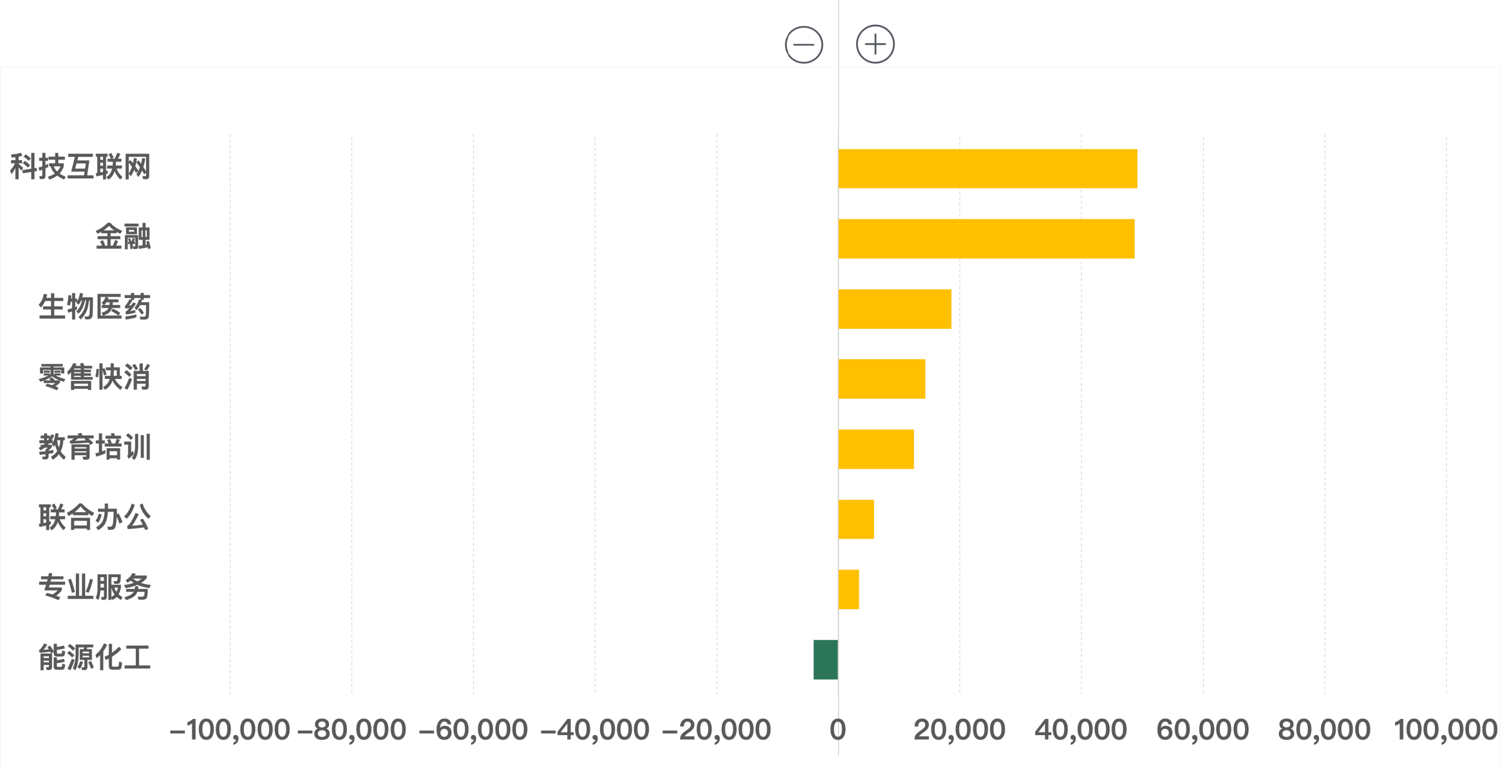 按行業(yè)成交面積(-/+)環(huán)比變化